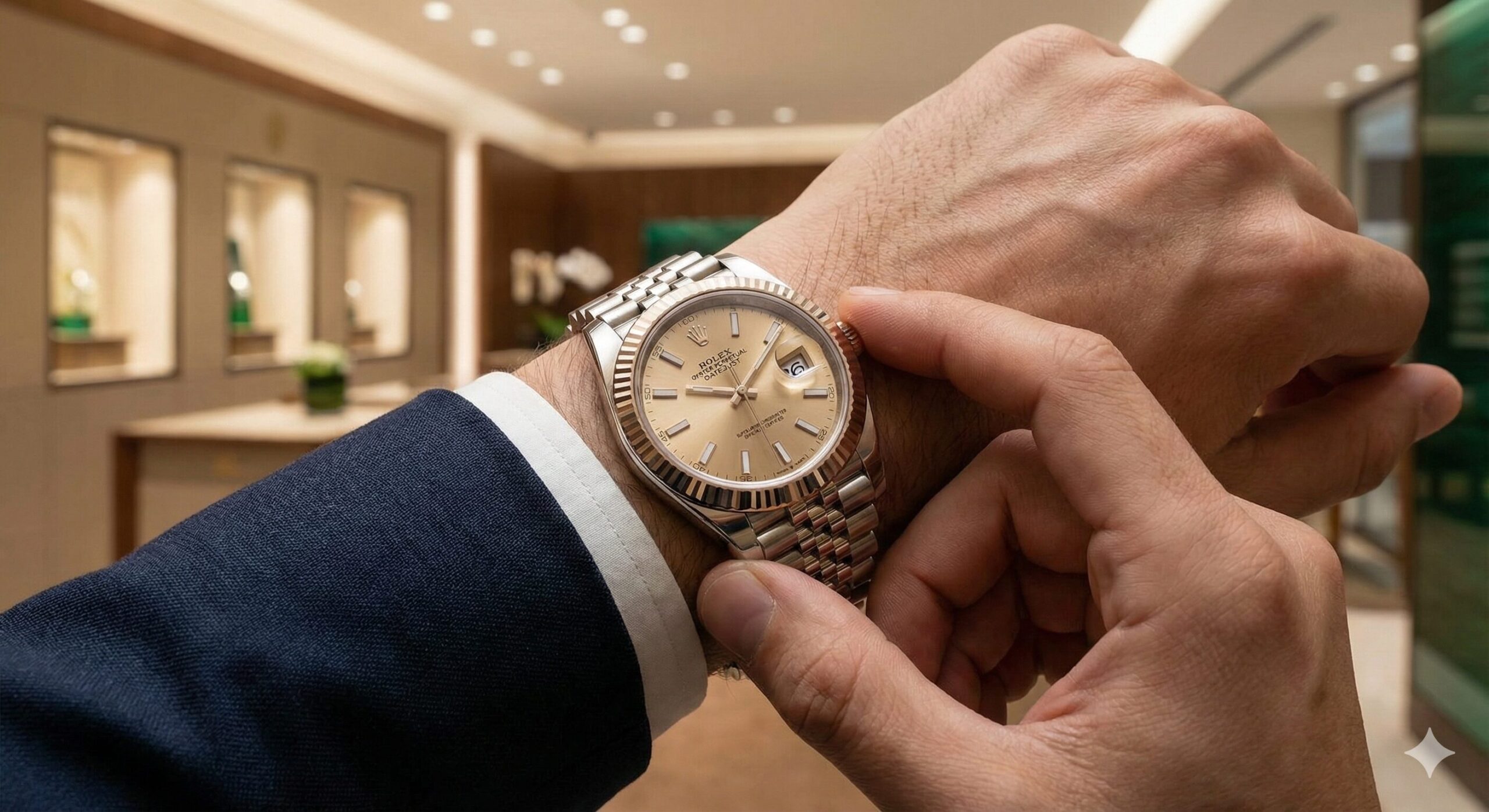 ショーケースに並ぶデイトジャスト41(スレート文字盤・ジュビリーブレス)の値札を見て、彼は愕然としたという。